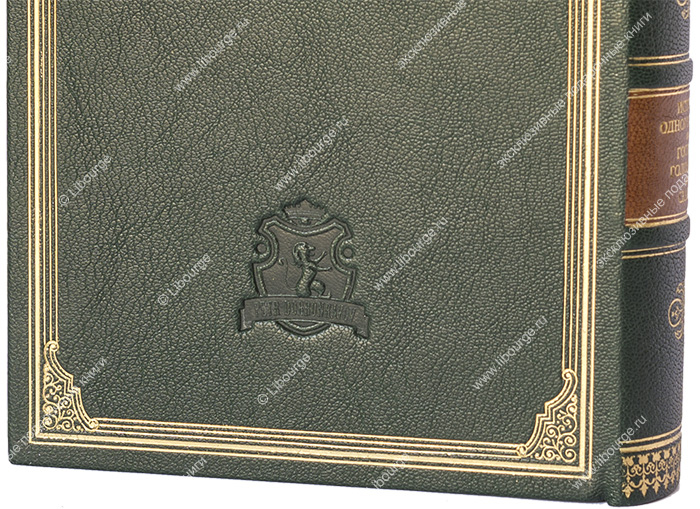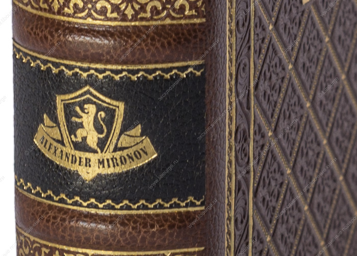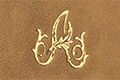 Заглавная буква фамилии владельца книги, золотое тиснение на нубуке