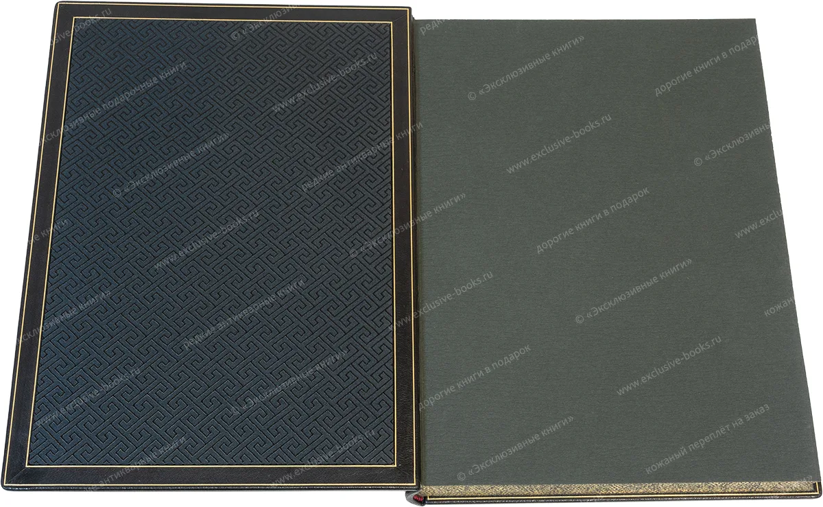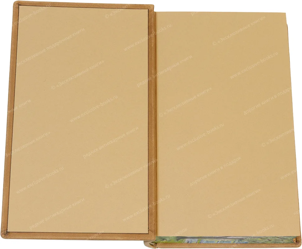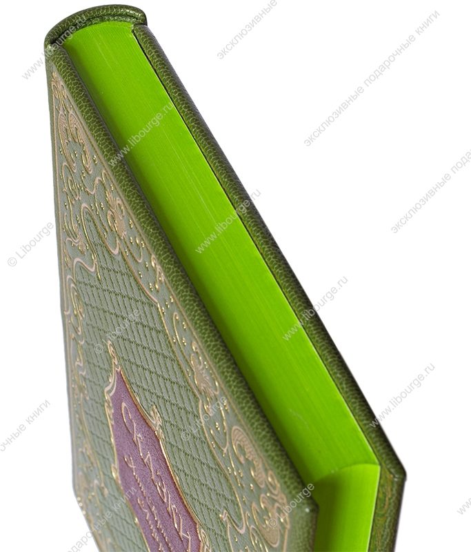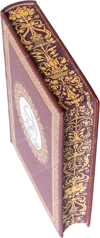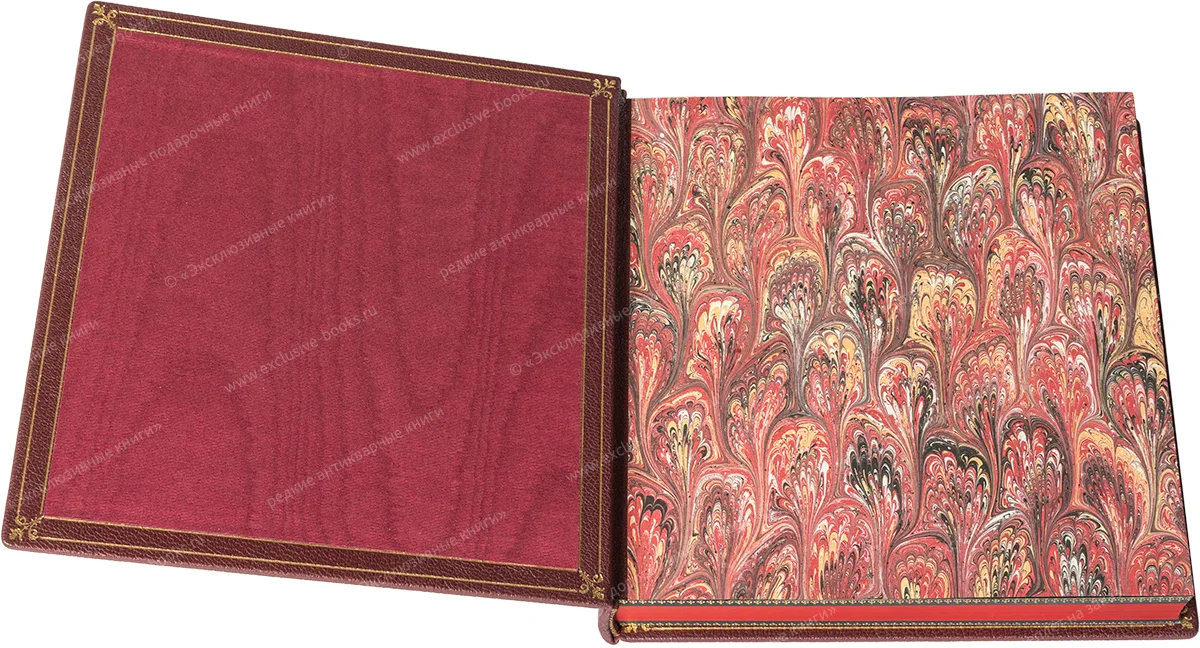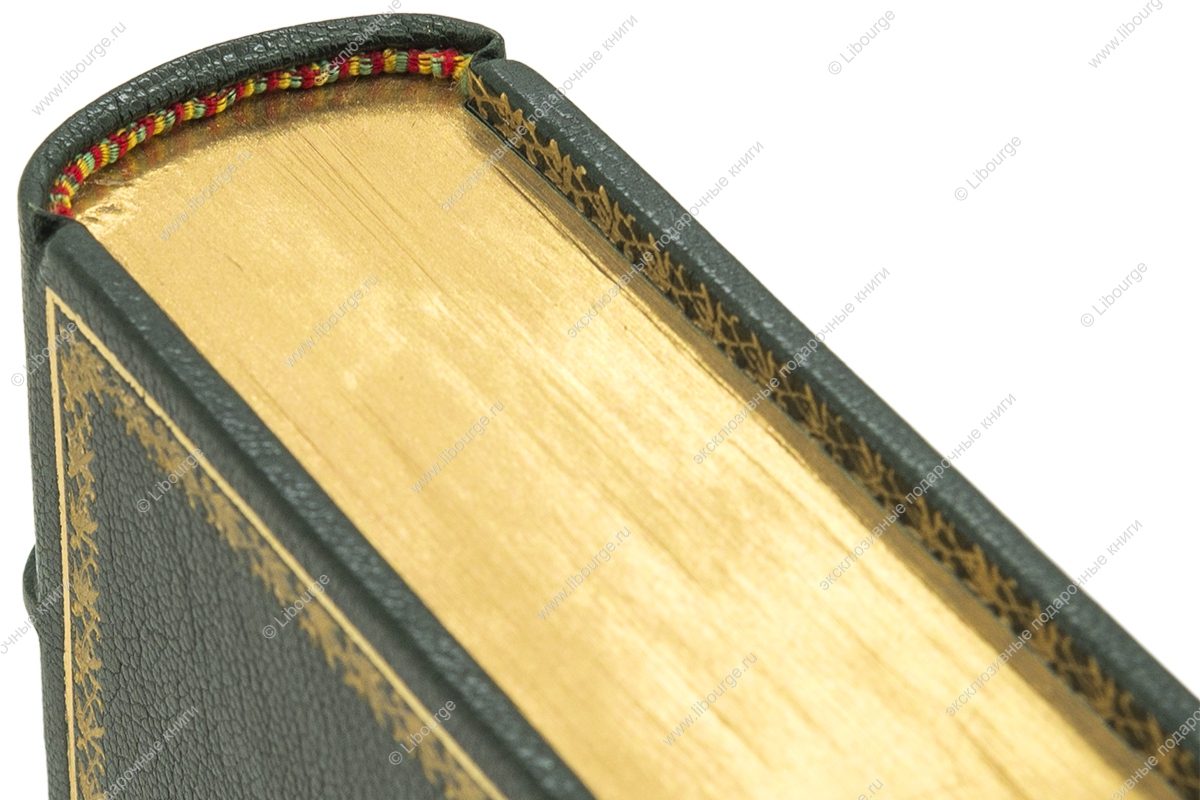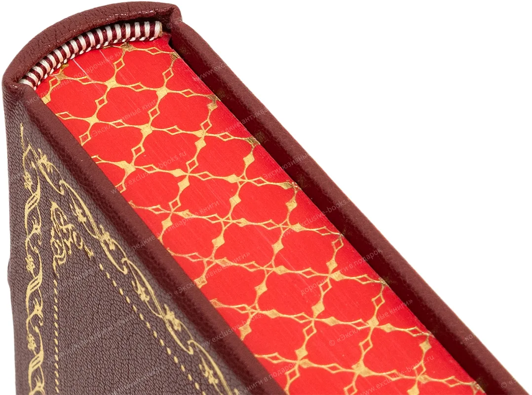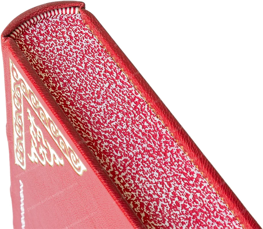 Верхние обрезы окрашены и гравированы золотым орнаментом, передние обрезы - окрас