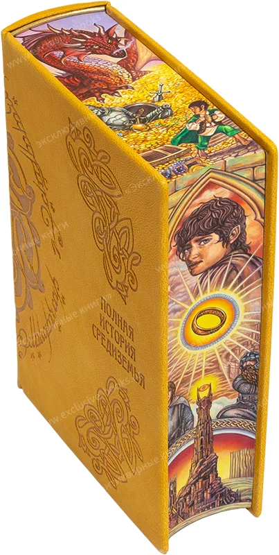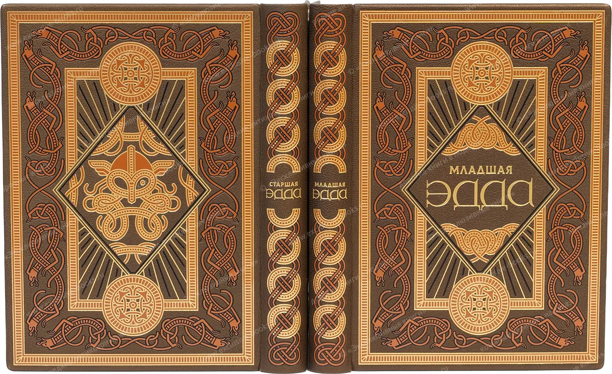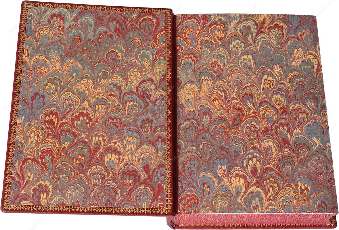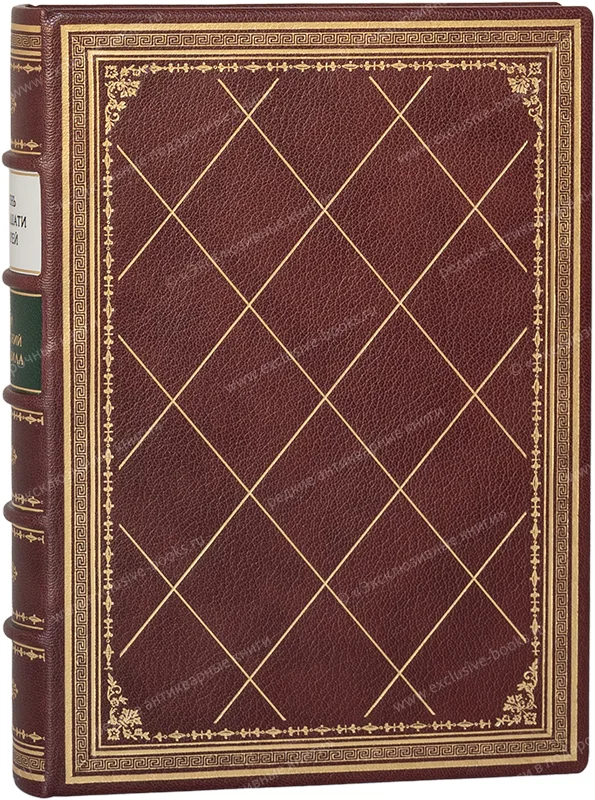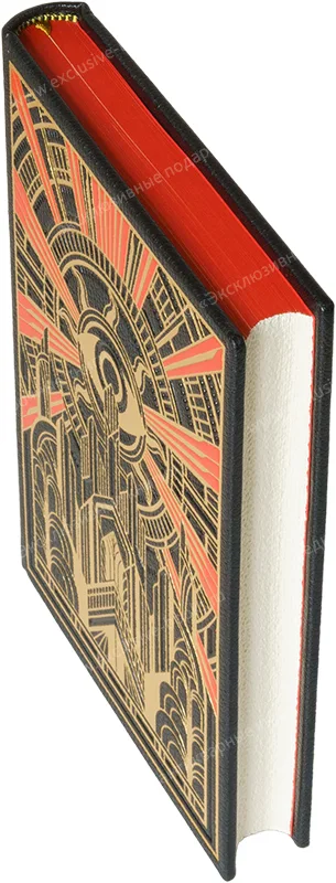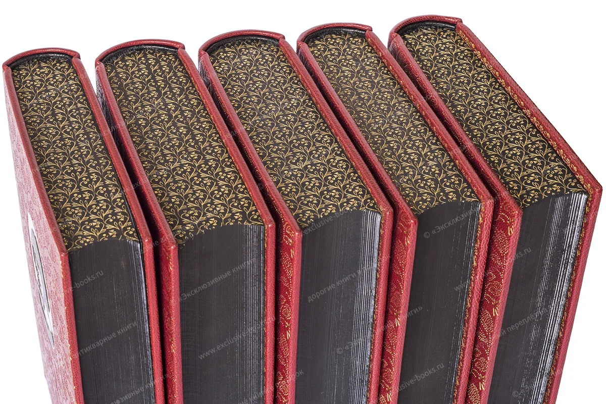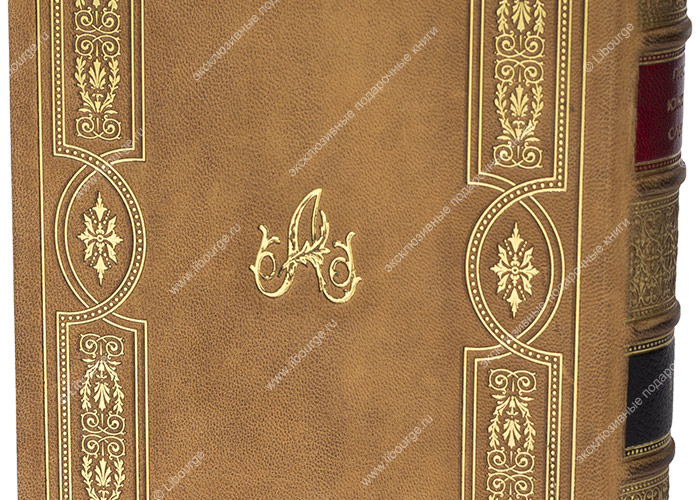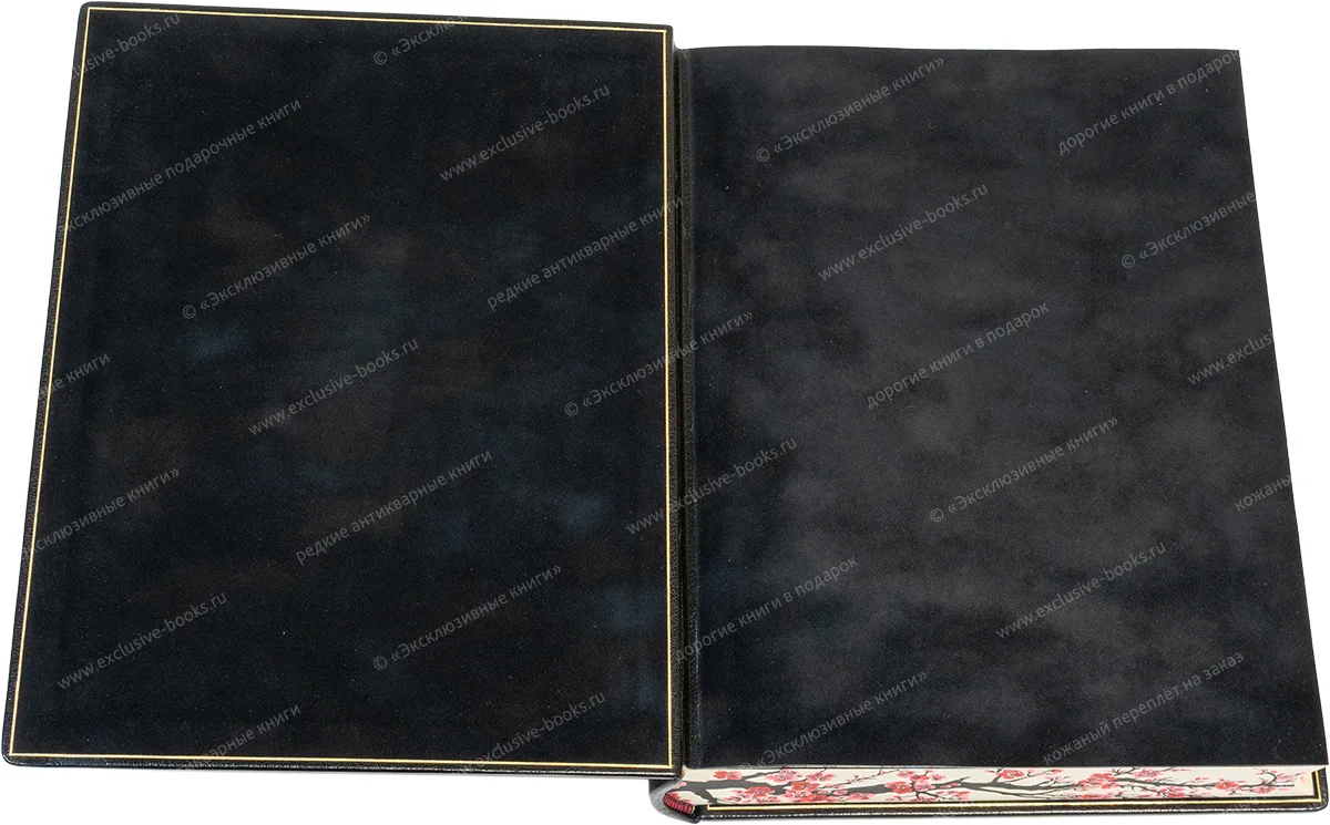 Верхние обрезы окрашены и гравированы золотым орнаментом, передние обрезы - окрас