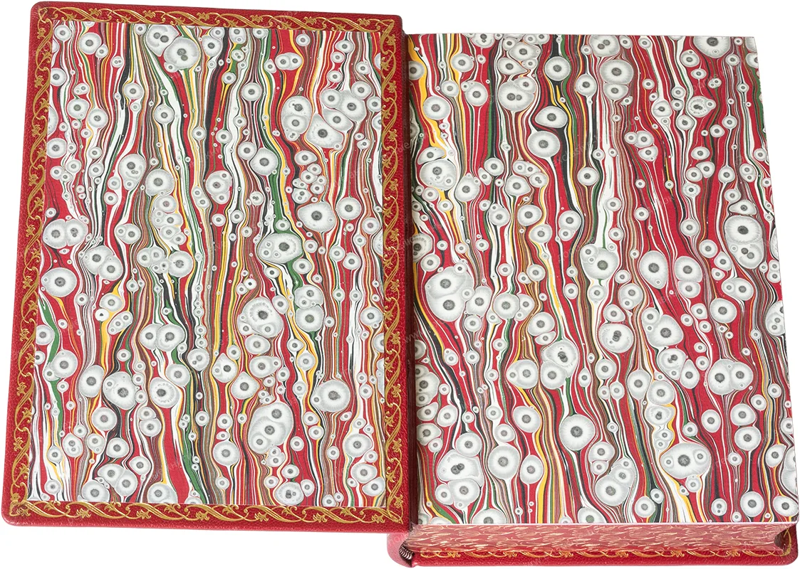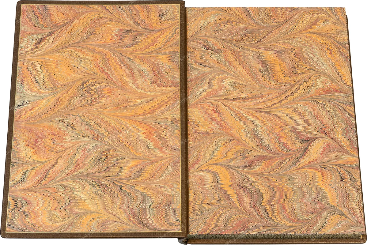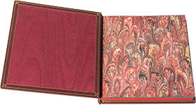 Составной форзац: тканевый муар на крышках и мраморная бумага - свободные листы.