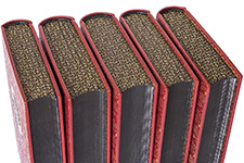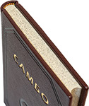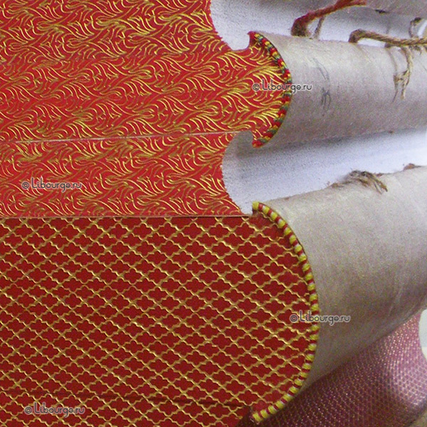 - Книжный блок сшит на шнуры, хвосты которых спрятаны в специальных надрезах в картоне крышек.