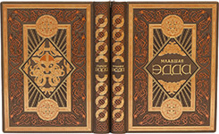 Данный тип переплета отличается как невероятной сложностью исключительно ручного изготовления, так и впечатляющей долговечностью произведенных книг. Характерными особенностями французского переплёта являются: